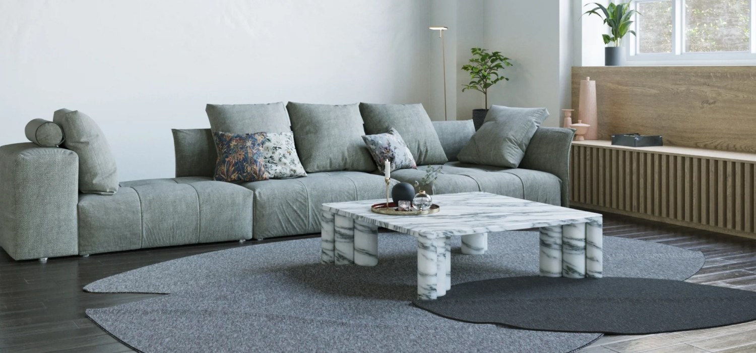 2. Living Room: Use a Marble Coffee Table as an Anchor