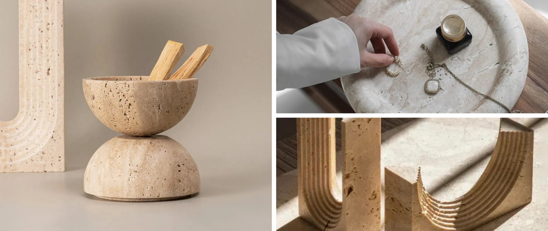 Travertine artifacts, with their unique porous texture and warm earthy tones, are beloved by design lovers. Formed by mineral-rich spring waters over millennia, each piece carries time’s marks, turning functional items into "earth stories".
